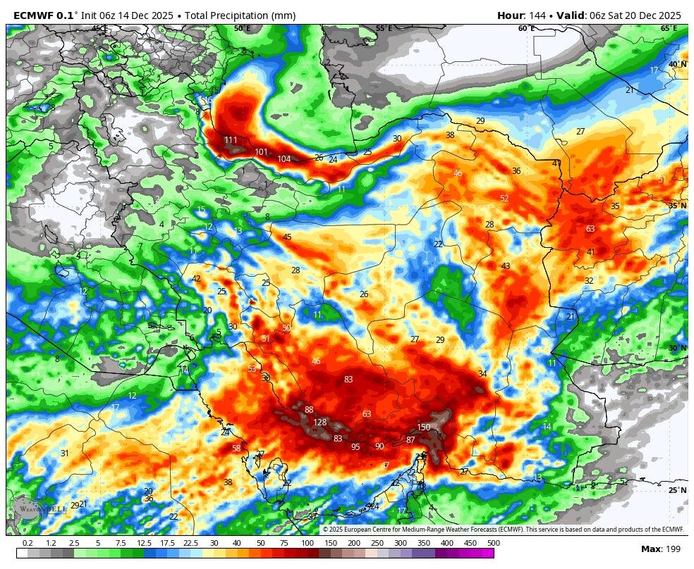 وی افزود: فردا (سهشنبه، ۲۵ آذر)، در بیشتر مناطق کشور بارندگی ادامه خواهد داشت و تنها استانهای ایلام، نیمه جنوبی سیستان و بلوچستان و نواحی مرکزی سمنان از این شرایط مستثنی هستند. همچنین روز چهارشنبه (۲۶ آذر)، بیشتر مناطق کشور به جز نیمه جنوبی سیستان و بلوچستان تحت تأثیر بارشها قرار خواهند گرفت.